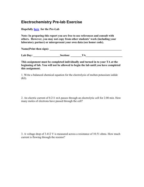 Read Electrochemistry Pre Lab Answers Kindle Editon