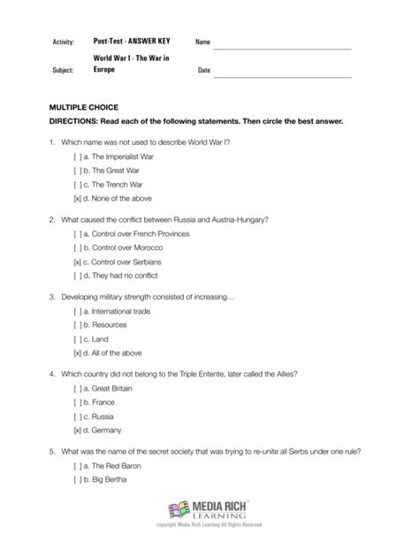 Read World War I The In Europe Post Test Answer Key Doc